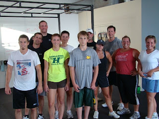 Great job by the group. Welcome back to Rob (left). As you can see he couldn't be more excited to be back. Susan (center) is doing very well and consistently challenges herself in the WOD's. Bruce, Jed and Ship (sitting outside cooling off) are teaching young Andrew (bottom left) how to make fun of each other.
